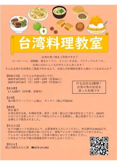 館山市では台湾の宜蘭県にある蘇澳鎮(スーアオチン)と姉妹都市締結を行うこととなり、それに伴い、台湾を身近に感じていただこうと台湾ウィークを開催します!