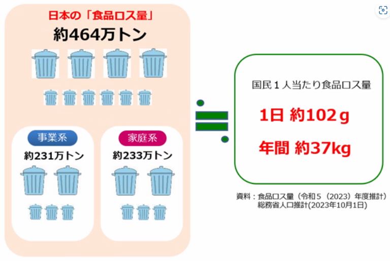 この数値から、国民1人当たりの食品ロス量は、1日で102g、1年で約37kg。