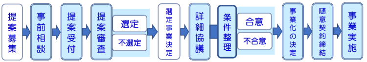 ・詳細協議の結果、市と民間事業者等が合意に至った場合においても、予算案が市議会で可決されないなどの理由により、事業化されない場合があります。