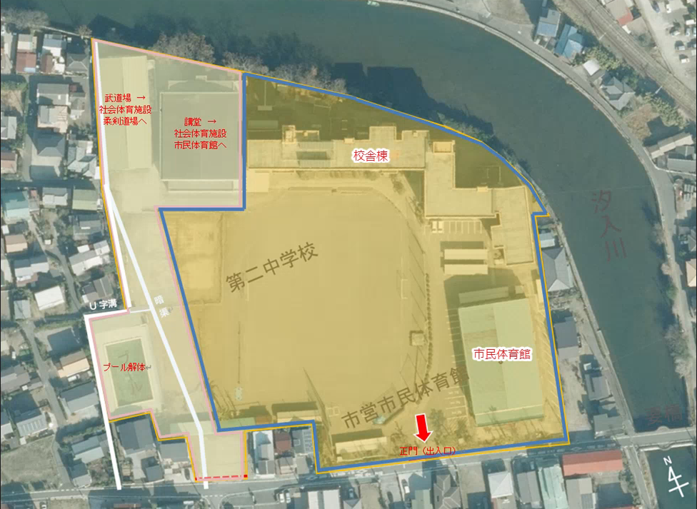 | 備考 | ・市民体育館のみの活用をする提案は募集の対象外 ・市民体育館は「同一敷地内の旧館山中学校 講堂」に移転する予定 |