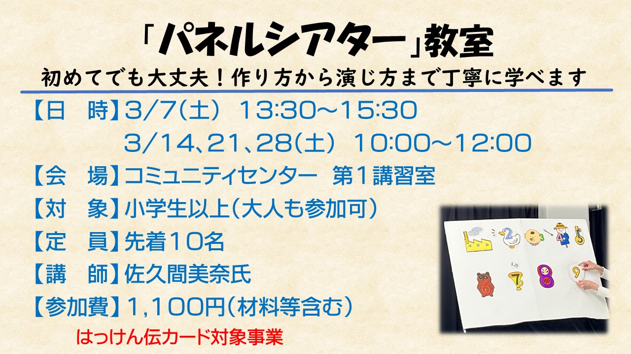 3月7日(土) 13:30~15:30 パネルシアターってな~に?(テーマの選択と作品作り)