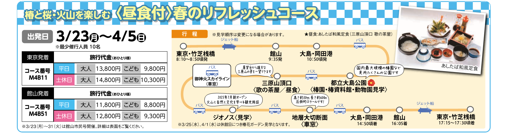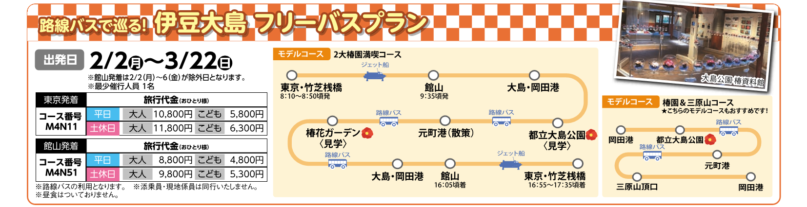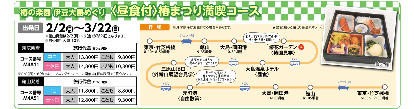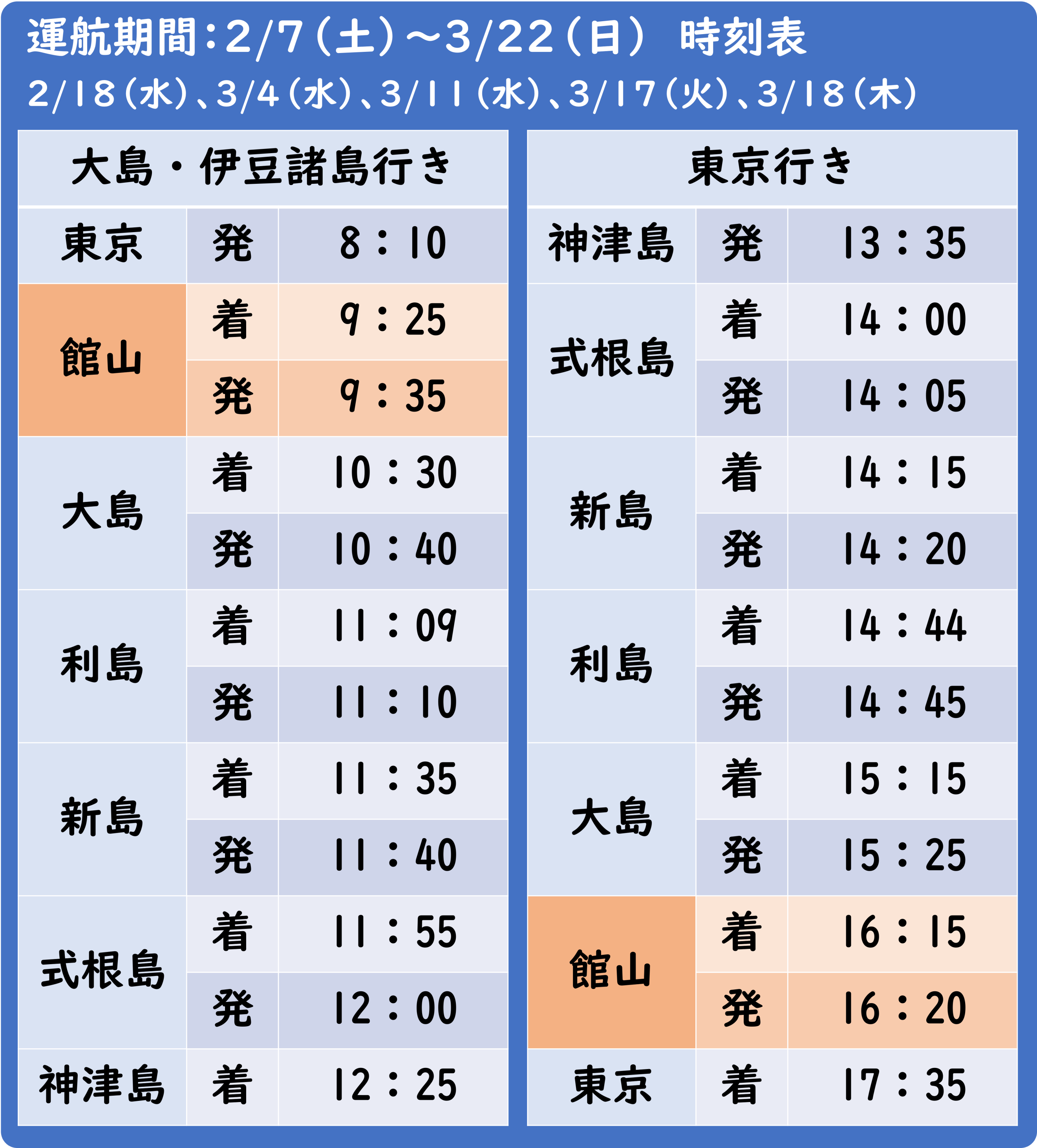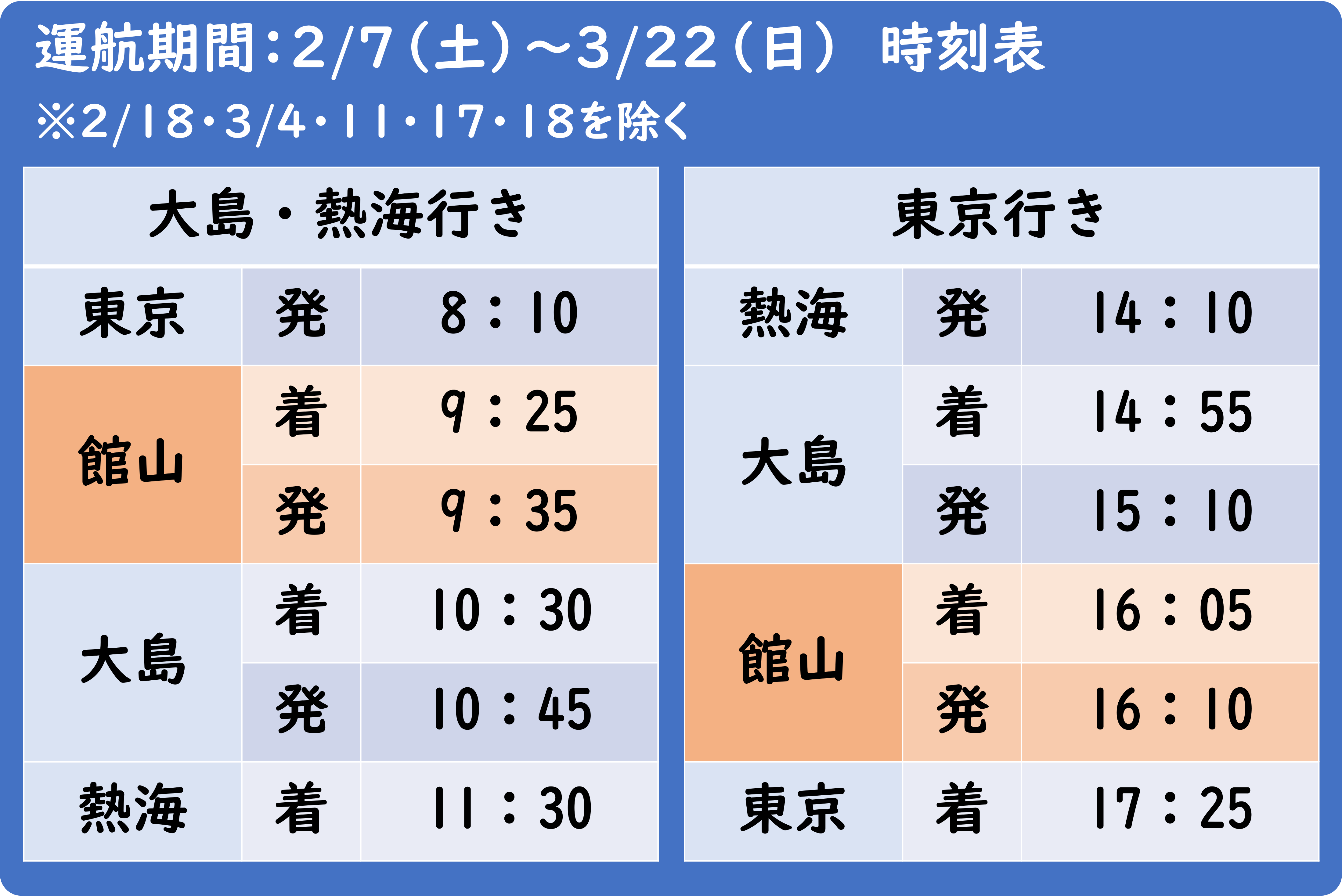 ※2月18日、3月4日、11日、17日、18日は、大島のあと熱海へは向かわず、利島、新島、式根島、神津島へ向かいます。