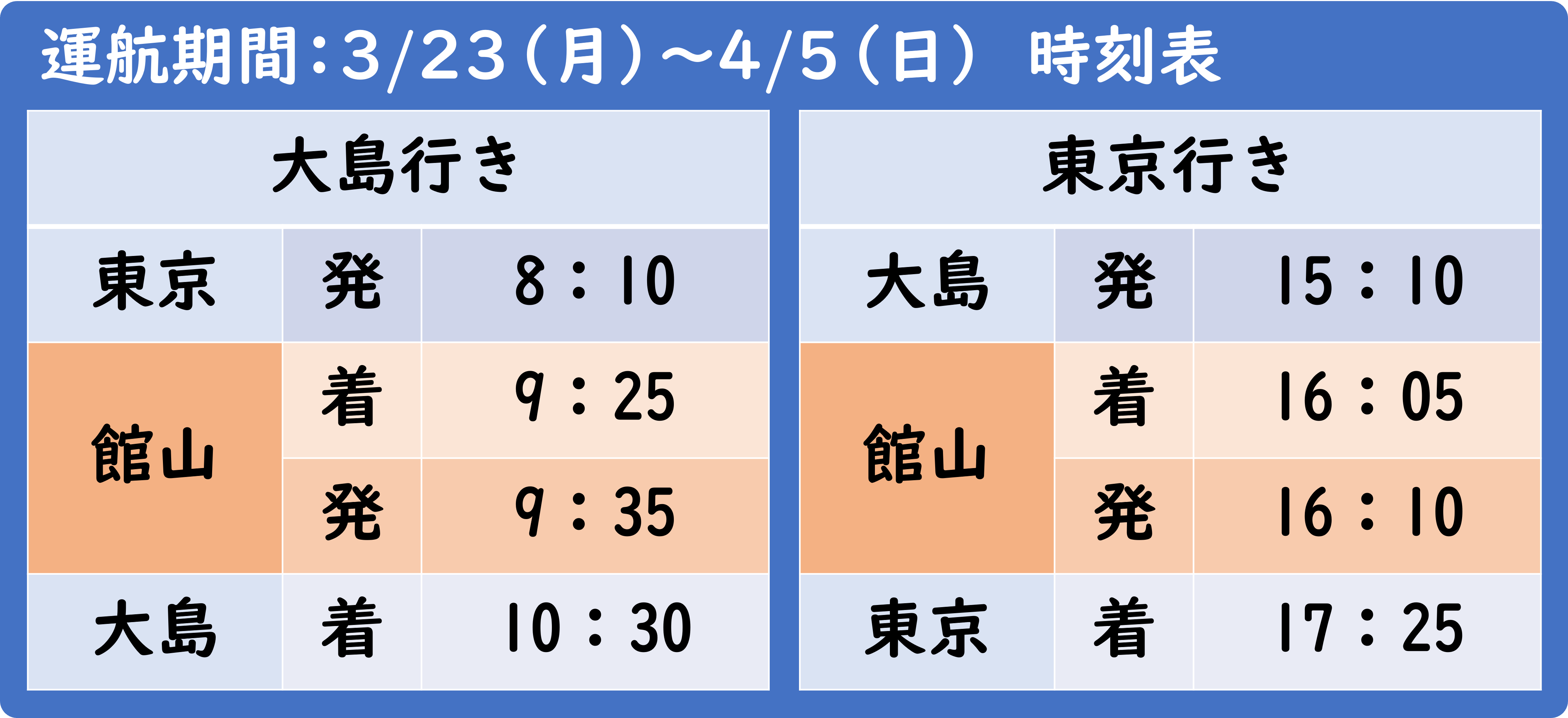 期間中、館山は東京(竹芝)、大島、熱海と海路で繋がります!