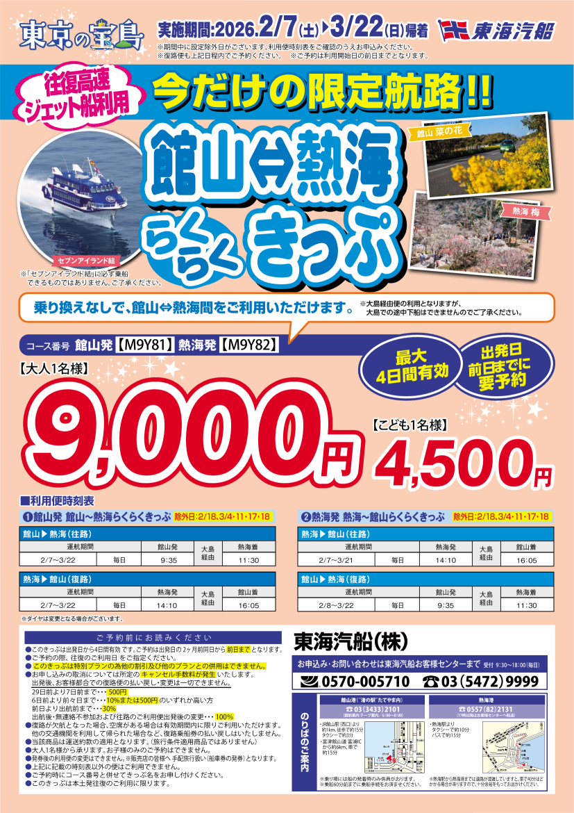 ※お申し込み・きっぷに関するお問い合わせは東海汽船お客様センターへご連絡ください。