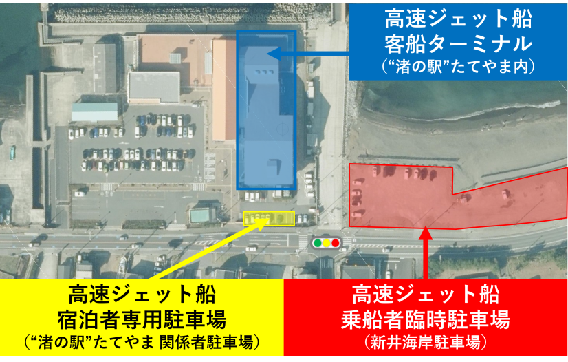 ■お車でお越しの方は「高速ジェット船乗船者 臨時駐車場」をご利用ください。