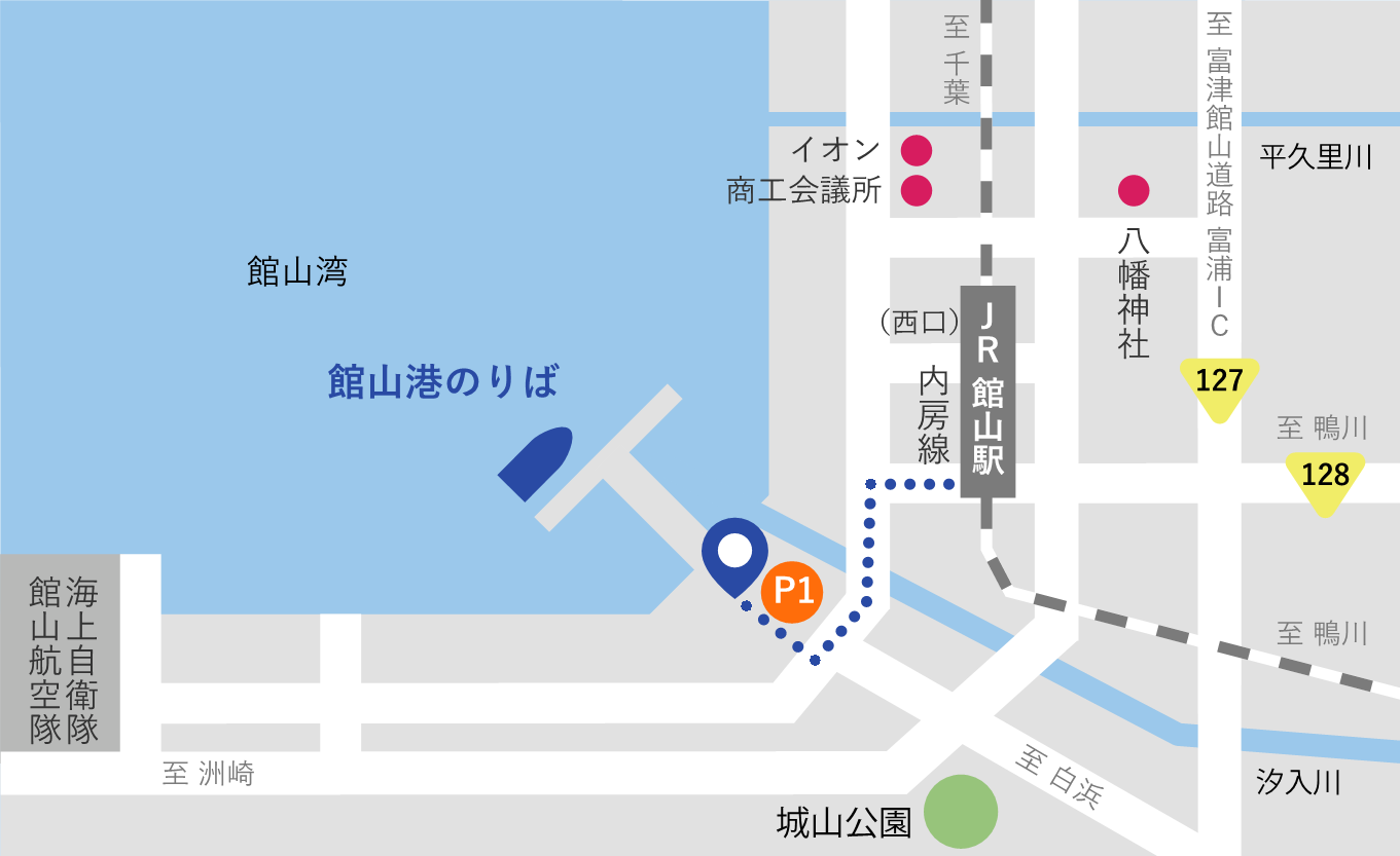 ■客船ターミナルは”渚の駅”たてやま(住所:館山市館山1564-1)内にあります。