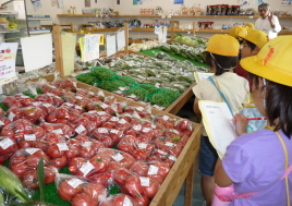しみぬきのやり方を教えてもらいました。 新鮮な野菜がならんでいます。品物は作っ