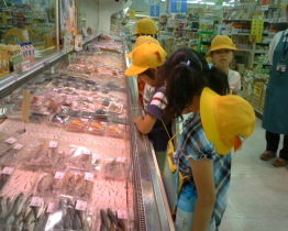 お魚がたくさんならんでいます。 とうふや厚揚げの作り方を教えてもらいまし