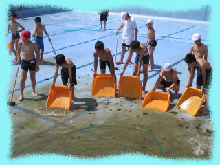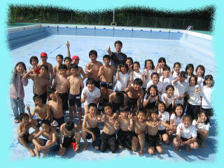 「うわ〜、汚いなぁ・・・。」 きれいになったプールで「ハイ、チーズ!」