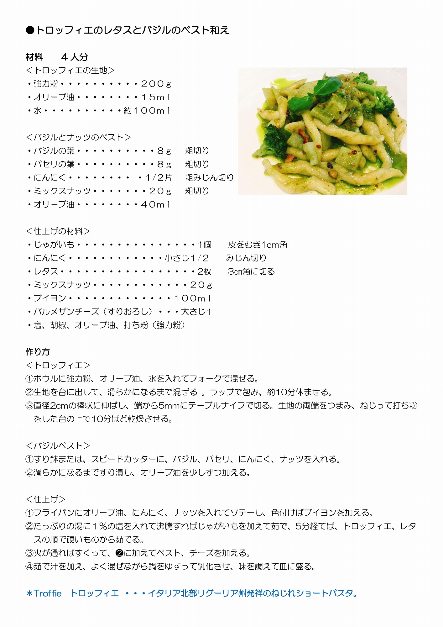 ●トロッフィエのレタスとバジルのペスト和え〈かんべレタス〉