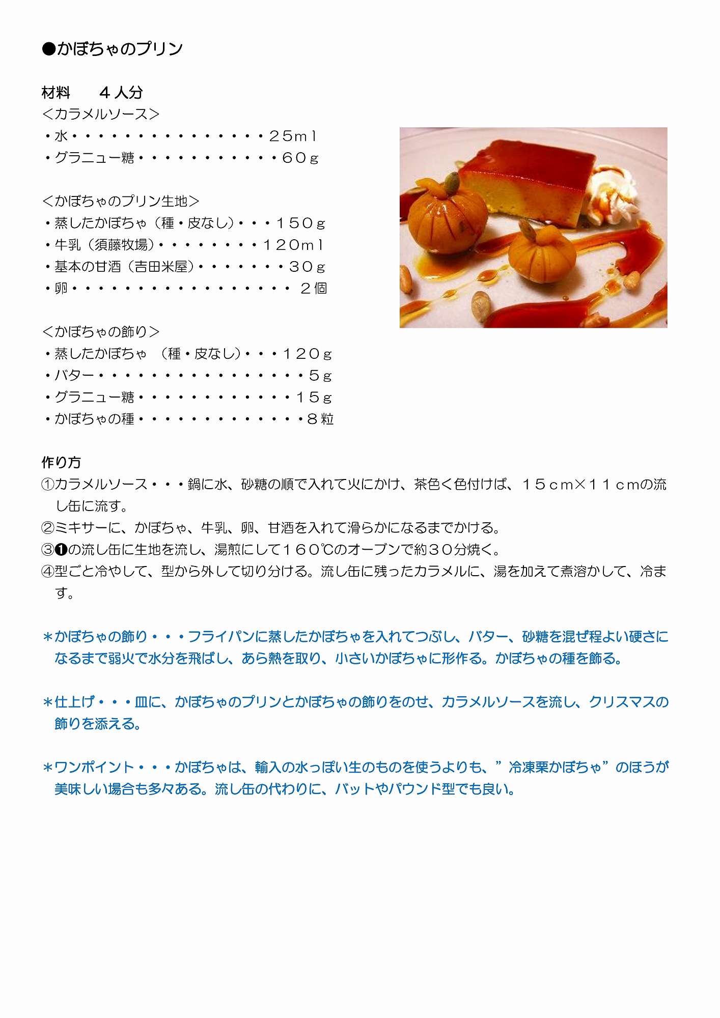 ●かぼちゃプリン〈吉田米屋の甘酒・須藤牧場の牛乳〉