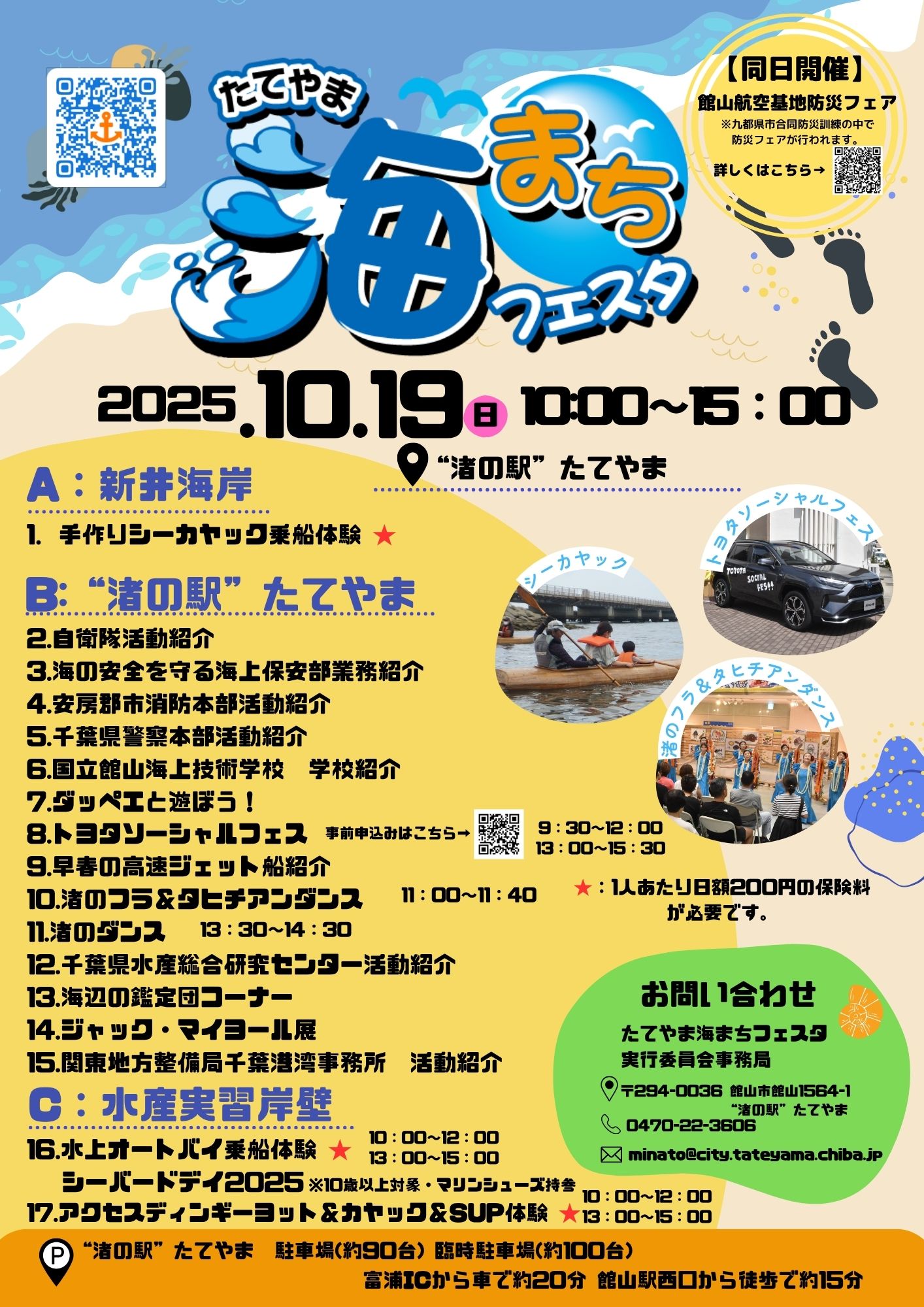“館山湾を活用した海辺のまちづくり”を推進する館山市では、多くの人々が、海や船に触れ、“海の魅力を満喫できるイベント” たてやま海まちフェスタ2025 を10月19日(日)に開催します。