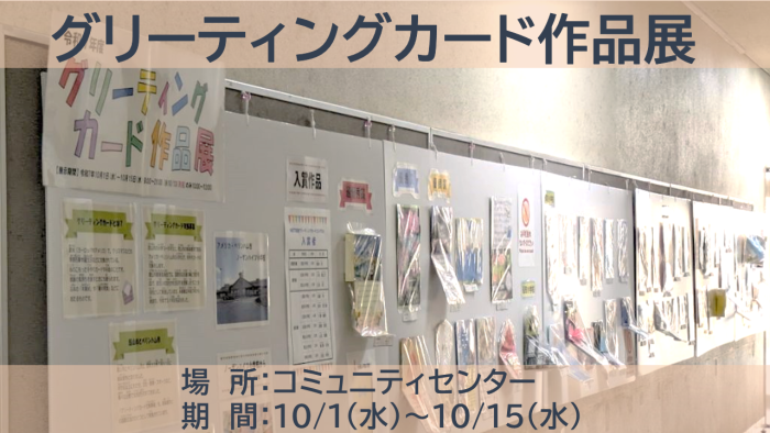 夏休み期間中に、市内小学3~6年生を対象に手作りのグリーティングカードを募集し、58点の応募がありました。今回、応募のあった全作品を展示します。