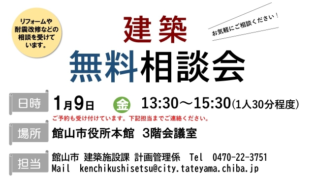 なお上記とは別に、千葉県建築士事務所協会安房支部主催の相談会もございます。